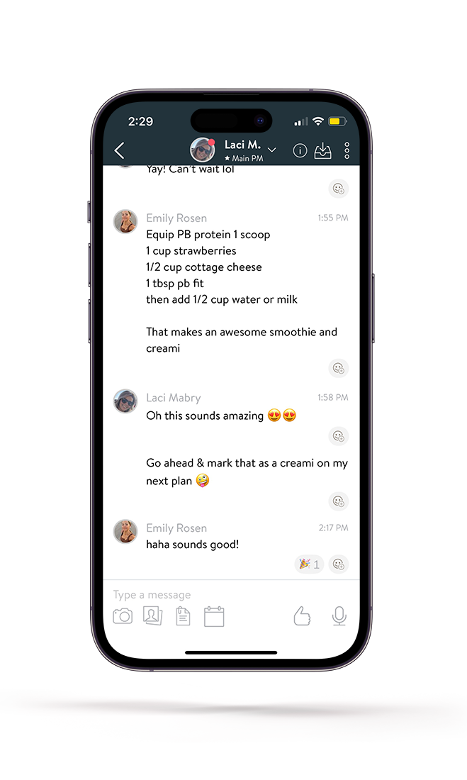 Coaching gives you weekly check-ins to track progress and make adjustments, plus unlimited messaging access to our team. Whether you need motivation, have questions, or want to tweak your plan—we’re here for you every step of the way.